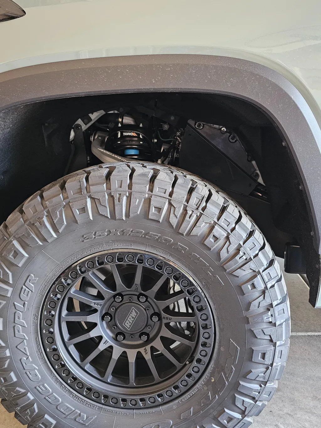 Example: 35x12.5 on a 9” wide wheel with +18mm offset (may require trimming)